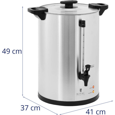 Zaparzacz do kawy marki Royal Catering idealnie nadaje się do produkcji dużych ilości kawy, ale także do parzenia i utrzymywania ciepła herbat lub innych naparów ziołowych. Ekspres o pojemności 20 l i mocy 1650 W szybko podgrzewa gorące napoje i utrzymuje je w odpowiedniej temperaturze. Obudowa zaparzacza została wykonana ze stali nierdzewnej, a nienagrzewające się uchwyty pozwalają na bezpieczne przenoszenie urządzenia nawet po zaparzeniu napoju. Pokrywa ze stali posiada mechanizm blokujący, który zapobiega rozlaniu napoju i zapobiega przed jego zanieczyszczeniem. Zintegrowany wskaźnik poziomu wskazuje liczbę filiżanek i ułatwia porcjowanie kawy. Ekspres pozwoli na napełnienie około 125 filiżanek za pomocą kranu dozującego, który gwarantuje czystość bez kapania. Taca ociekowa przymocowana do podstawy zaparzacza zapewnia wysoki poziom higieny i łatwe czyszczenie.