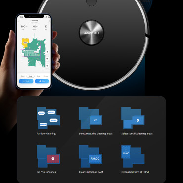 • - Innowacyjna technologia laserowa: Dzięki technologii LDS, robot 360deg skanuje i mapuje przestrzeń, dokładnie identyfikując przeszkody oraz określając optymalną trasę sprzątania. Szybkie i precyzyjne mapowanie pozwala na wydajną pracę nawet w skomplikowanych warunkach podłogowych,